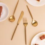 Enhance your dining experience with the Glimpse Homes Matte Gold Cutlery Set. Crafted from Anti-Corrosive 202 Stainless Steel, this premium set of 4 cutlery pieces features an elegant matte gold finish. Elevate your table setting with this stunning and durable cutlery set that combines style and functionality. Set of 4 includes
