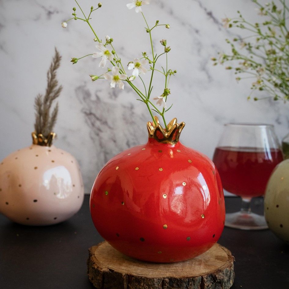 You might or might not be a fan of the pomegranate fruit. But you will definitely become a fan of this beauty of a showpiece! Use it as a table centerpiece, as a flower vase, as an incense holder or anything creative that you can come up with!